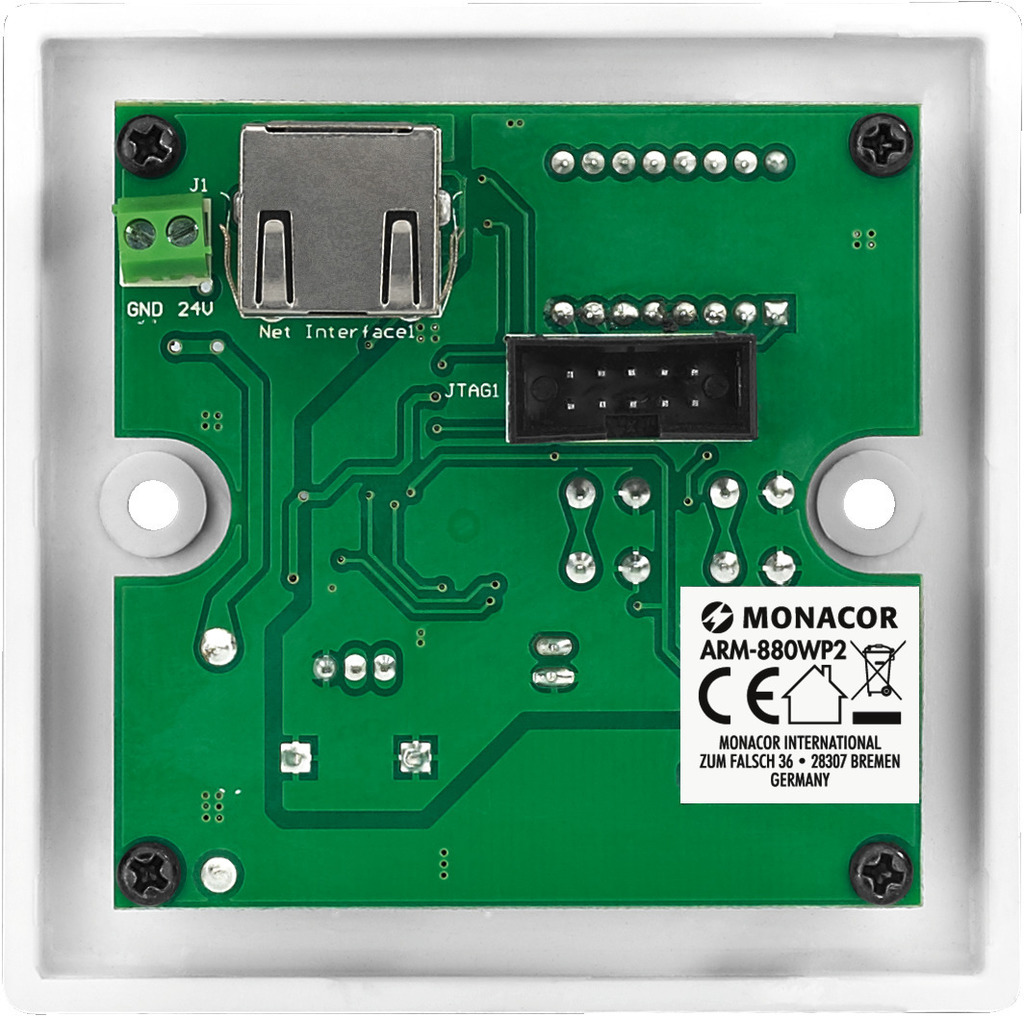 - Connection to ARM-880 and power supply via RJ45 jack and Cat. 5 network cable. A separate power supply is required for operation with cable lengths of more than 50 m