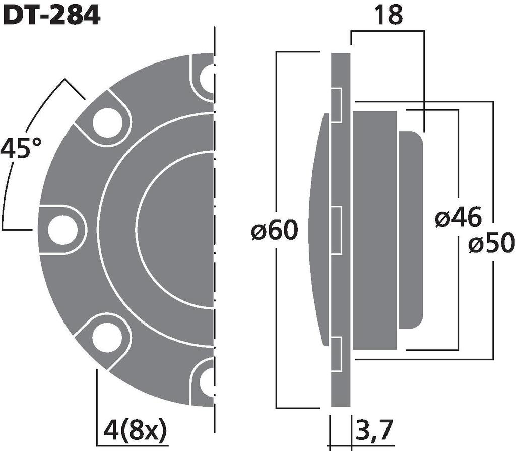 DT-284 “The Dome”. This tweeter provides everything expected from a top class tweeter: a sensationally linear frequency response, high level reserves, low crossover frequency, compact size and a distinct and appealing design!