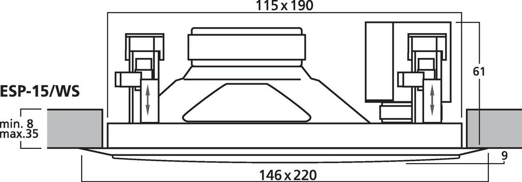 - For a wall thickness/ceiling thickness from 8 to 35 mm