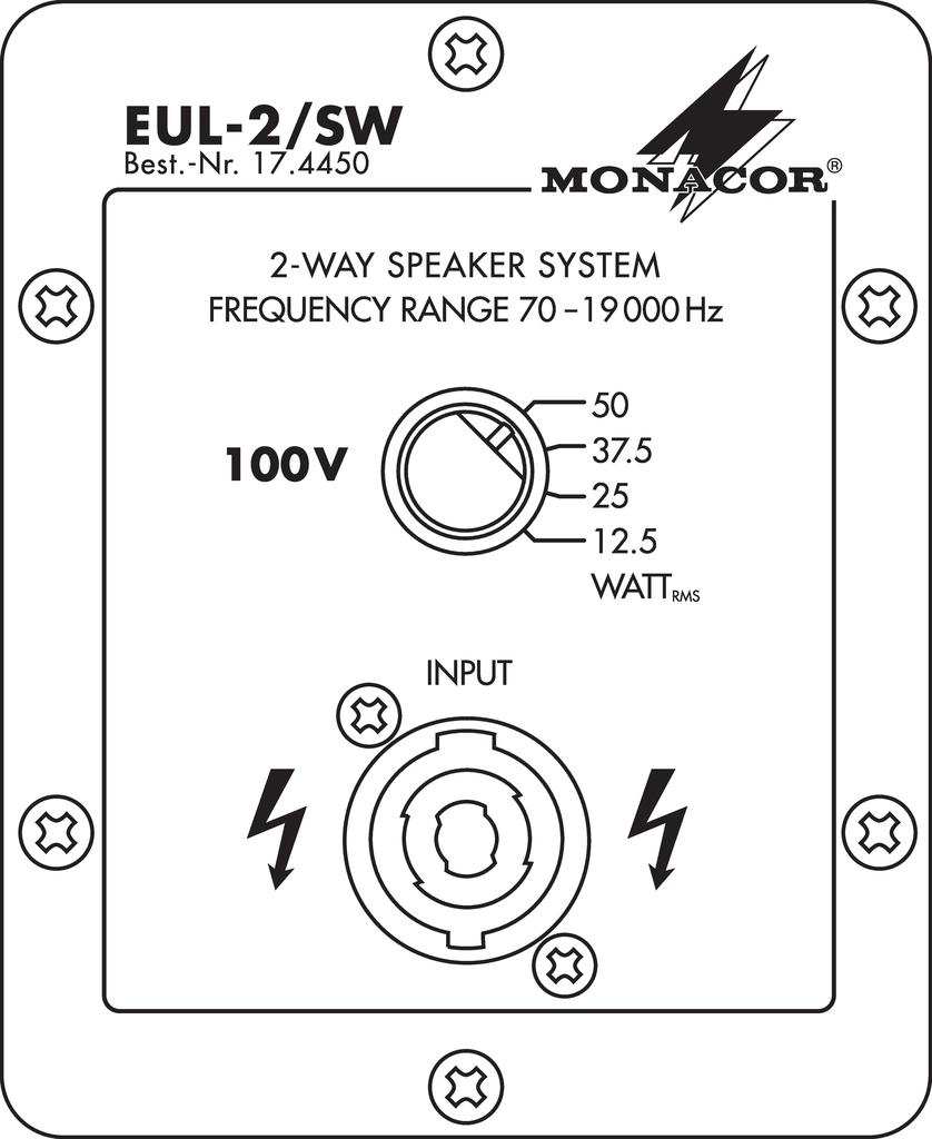 - A subwoofer support is useful for bass reproductions of high requirements (e.g. with EUL-2SUB/SW)