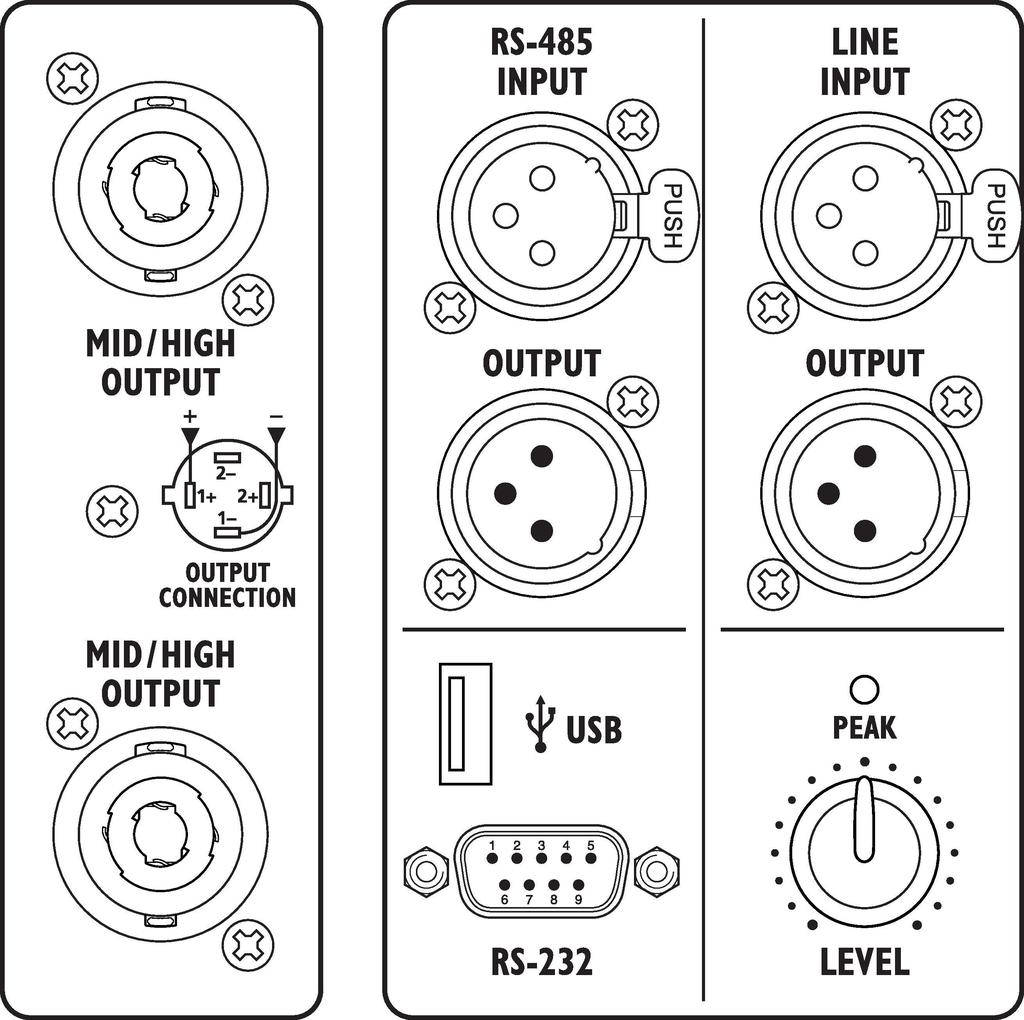 The speaker cables with NEUTRIK SPEAKON connectors are in the scope of delivery and allow to connect the parts with each other and with the subwoofer.