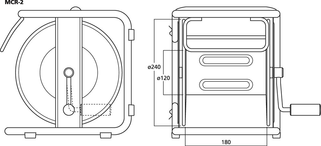 - Metal reel Ø 240 mm, with crank handle