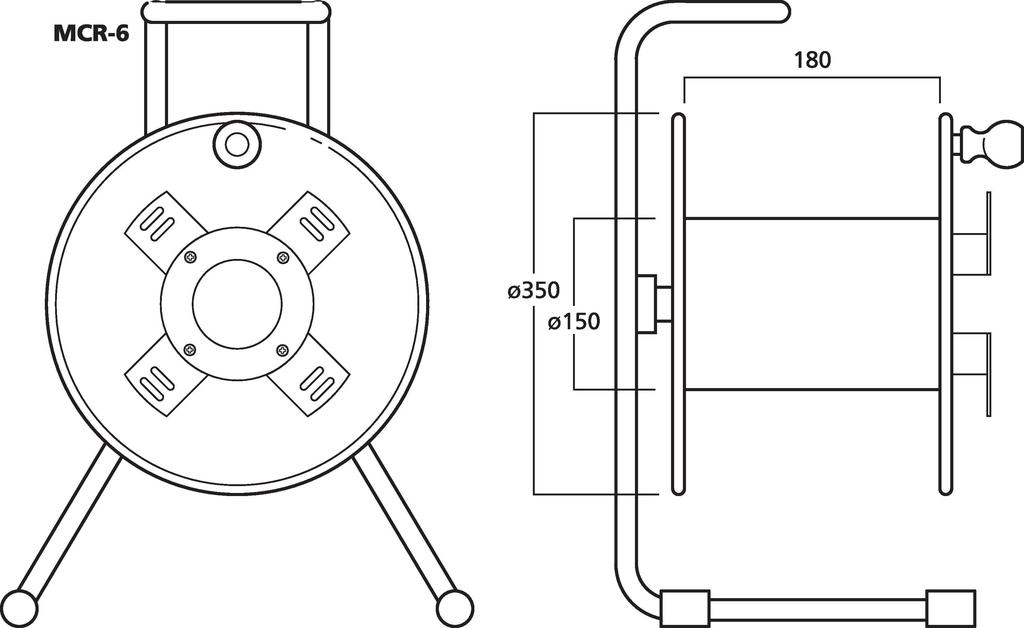 - Metal reel Ø 350 mm, to be secured with locking screw