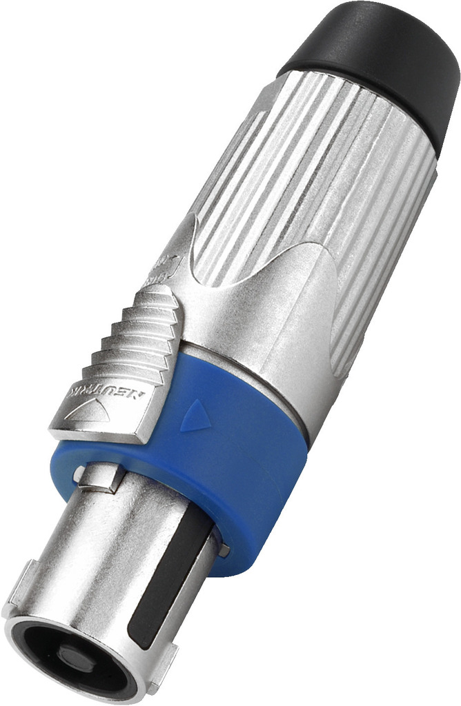 Series of Speakon connectors for professional speaker connection technology. Robust design, latching device, all-insulated contacts, cable inlet with self-adjusting clamps.