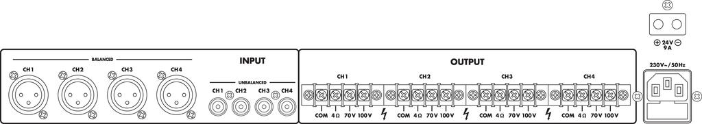 During operation, there may be a hazard of contact with a dangerous voltage of up to 100 V at the speaker terminals. Always switch off the amplifier before making or changing any connections.