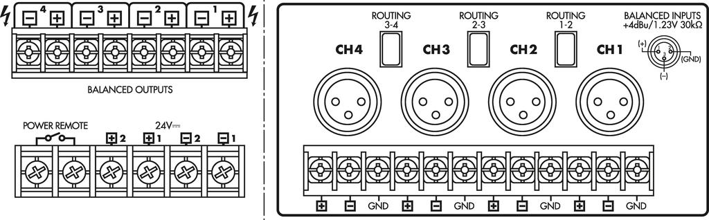 - Routing switches for parallel operation on 2 channels each