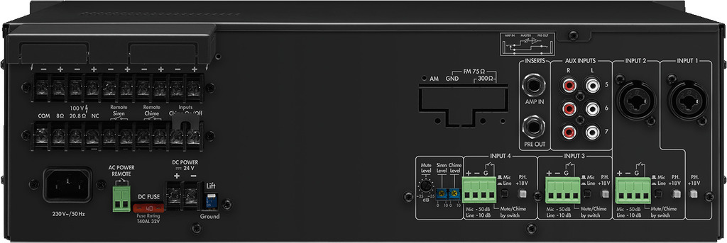 During operation, there may be a hazard of contact with a dangerous voltage of up to 100 V at the speaker terminals. Always switch off the amplifier before making or changing any connections.