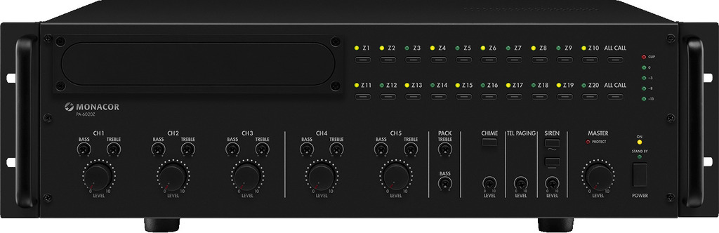 5-zone mono PA mixing amplifier, 480 W