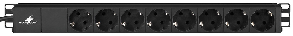 with an illuminated main switch on the front panel and 8 earthed sockets on the rear panel.