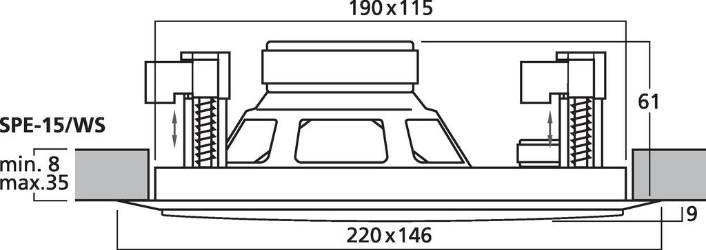 - For a wall thickness/ceiling thickness from 8 to 35 mm