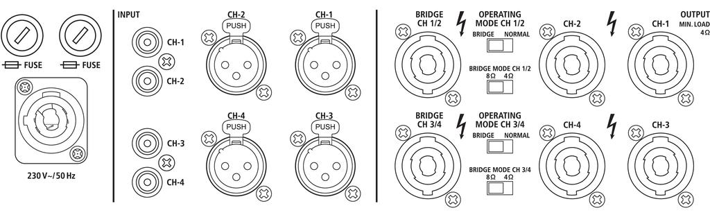 - 2 or 4 channels in bridged mode