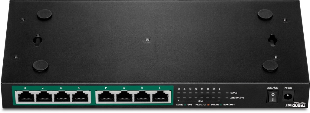 - 8 ports (RJ45) with 10/100/1,000/2,000 Mbps each, 8 PoE/PoE+ ports