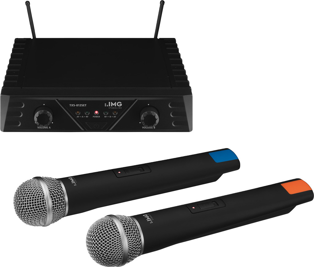 - 2 microphone transmitters, 1 receiver, 1 plug-in power supply