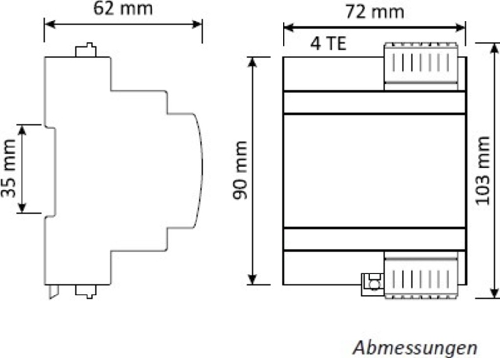 - For mounting onto DIN rails according to DIN EN 60715, 4 HP