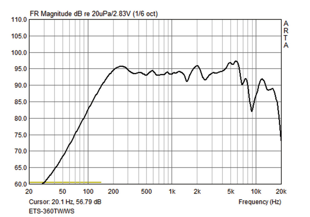 Column speaker in a wooden cabinet of compact size, coated with high-quality foils in decorative wood pattern, 2½-way technology with tweeter (25 mm textile dome), clearly extended frequency range compared with standard full range column speakers. The ETS-360TW/WS speaker impresses with an incredibly dynamic and complete sound, a convincing speech intelligibility and an amazing sound even at higher volume levels.