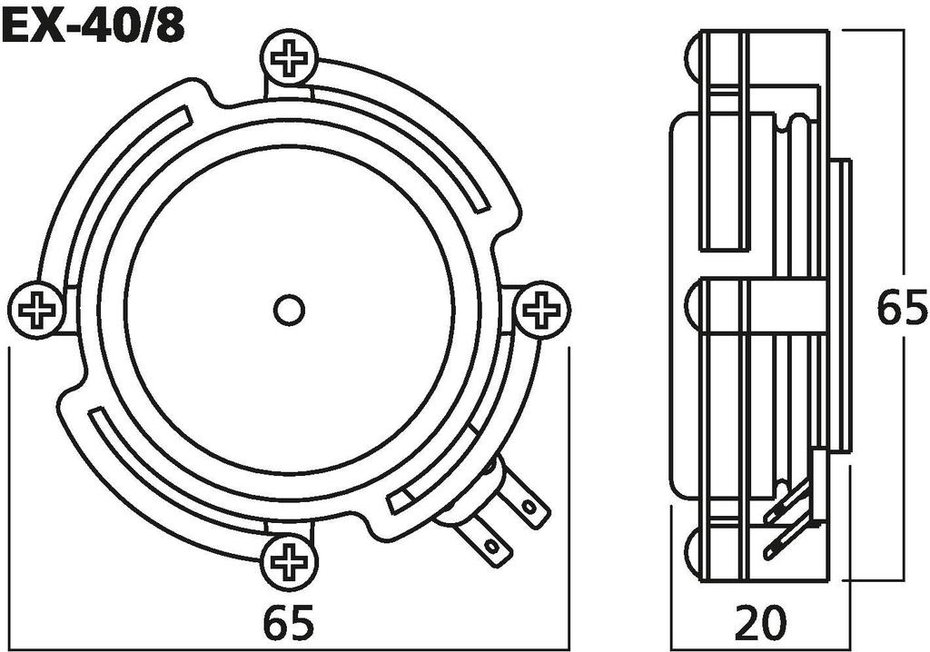 Audio exciters/resonators, 20 W, 4 Ω (/4) or 8 Ω (/8)