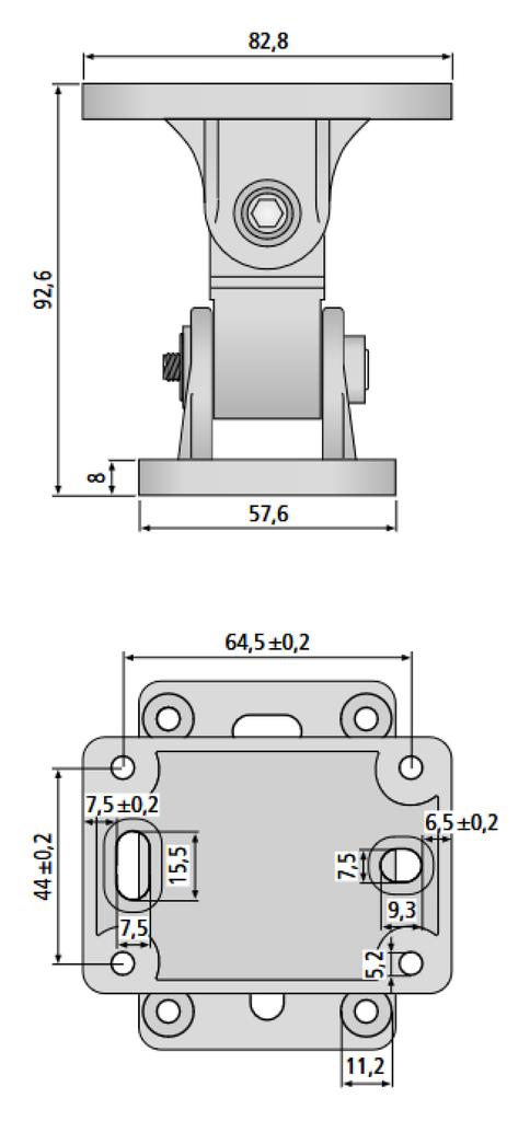 - Dimensions: mounting flange: 82.8 x 57.6 mm, mounting plate: 82.8 x 57.6 mm