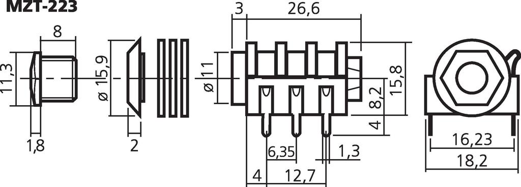 Homepage Products Cables and plug-in connectors Plugs, Jacks Order no.: 0340690 MZT-223 Order no.: 0340690 MZT-223 6.3 mm stereo panel jack 3 switching contacts. continue Login Register About Specifications Downloads About 6.3 mm stereo panel jack 3 switching contacts. Specifications Description panel jack Type stereo jack Quantity 1 Colour/colour coding black/silver Pole number 3 Connection 6.3 mm connector Stereo yes Switches 3 Material metal Admiss. ambient temp. -30 °C to +80 °C Weight 8 g EAN code 4007754017755 Net weight 0.008 kg Downloads Datasheet D340690Z Services Product & Purchasing Advice +49 421 4865 512 export@monacor.com Technical project management +49 421 4865 512 export@monacor.com Repair Service +49 40 853 999-717 support.monacor@sertronics.de Training at the MONACOR Academy +49 421 4865 701 academy@monacor.com