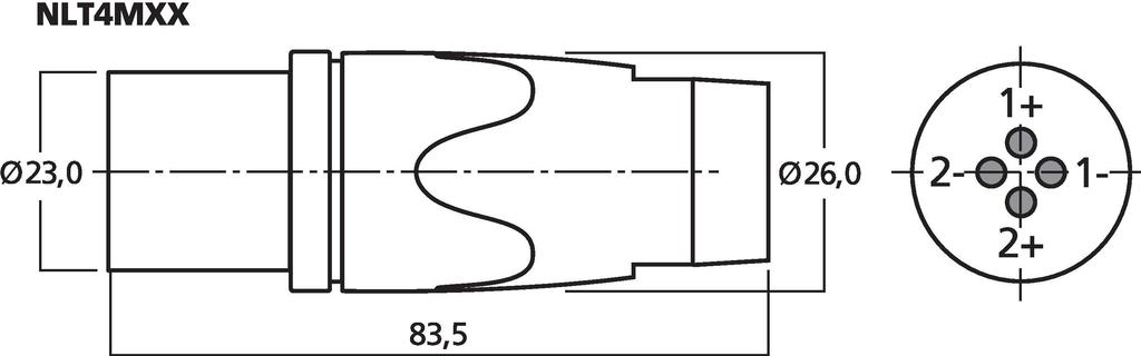 Series of Speakon connectors for professional speaker connection technology. Robust design, latching device, all-insulated contacts, cable inlet with self-adjusting clamps.