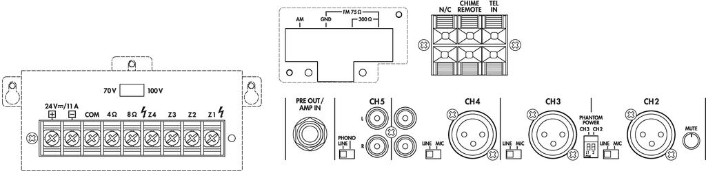 During operation, there may be a hazard of contact with a dangerous voltage of up to 100 V at the speaker terminals. Always switch off the amplifier before making or changing any connections.