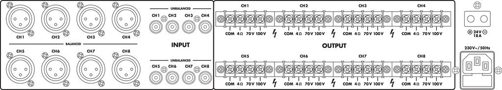 - Requires a lower rechargeable battery capacity for emergency power operation than 100 V analogue amplifiers