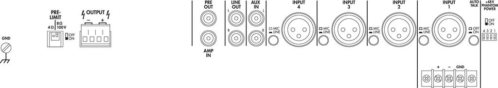 During operation, there may be a hazard of contact with a dangerous voltage of up to 100 V at the speaker terminals. Always switch off the amplifier before making or changing any connections.
