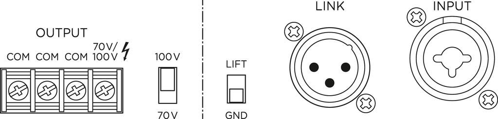- LED indication for clip, protect, overtemperature, output level and 100 V/70 V
