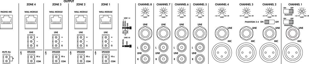 - 1 connection for zone paging microphone PA-M4RC
