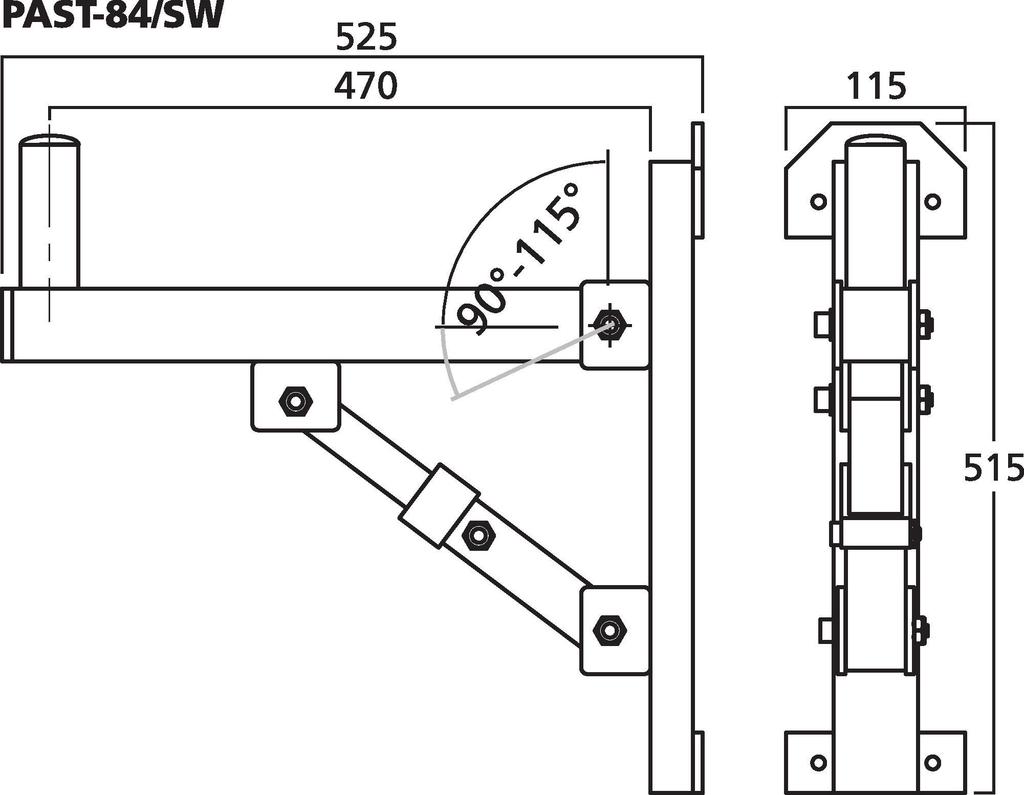 - Tilting angle adjustable in 4 steps (90-115°), to be secured with locking screw